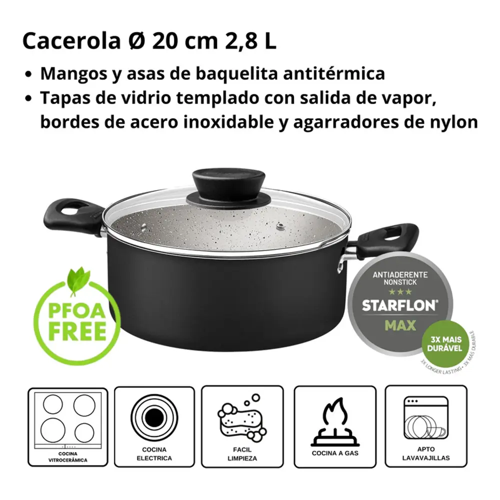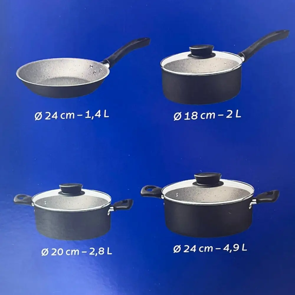 Piezas incluidas: Cacerola 20cm,Cacerola 24 cm,Olla 18cm,Sarten