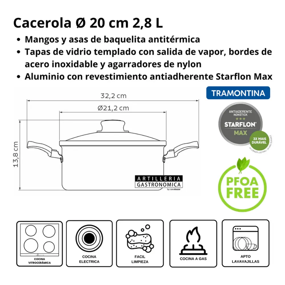 Piezas incluidas: 1 Cacerola 18 cm,1 Cacerola 20cm,1 Cuchillo de chef,1 Fuente de horno honda 22 cm,1 Fuente de horno redonda 22 cm,1 Hervidor 12cm,1 Olla 14 cm,1 Olla 16cm,1 Sartén 16 cm,1 Sartén 20 cm,1 Tabla de cortar,1 Tenedor para trinchar Plenus