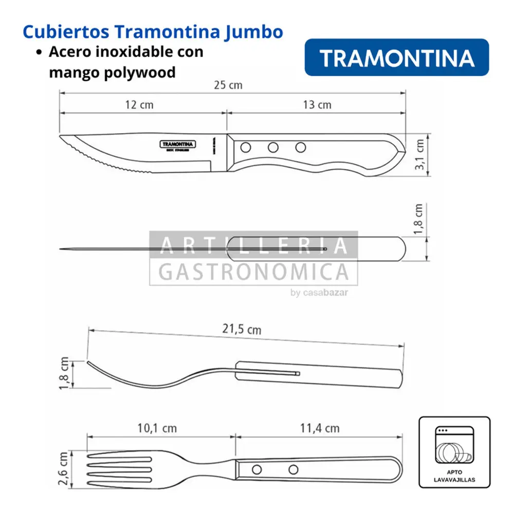 Cubiertos incluidos: CuchilloJumbo,Tenedor jumbo